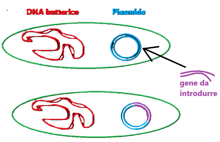 I tagli effettuati sono due: uno sulla cellula donante e uno sulla cellula ricevente, per inserire nel genoma del plasmide il gene umano. I tagli vengono compiuti dalla stessa endonucleasi, dallo stesso enzima di restrizione.
