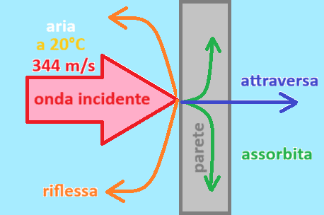 La parte assorbita genera vibrazioni che si dissipano all’interno del materiale della parete come calore.