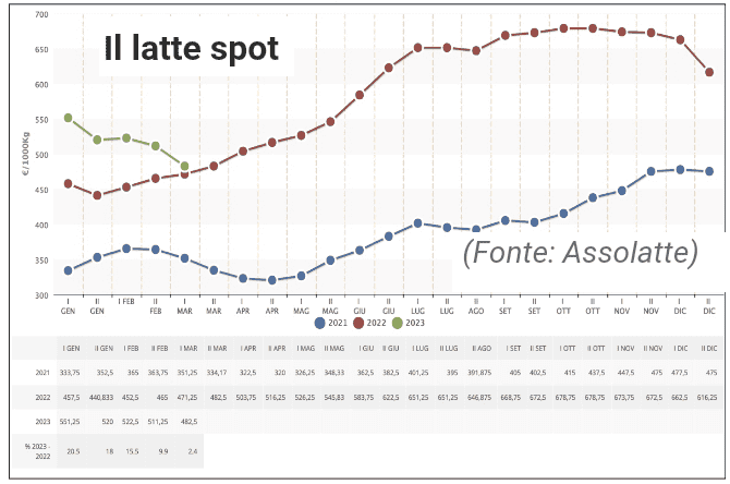 57,5 cen/l (Iva esclusa) per il latte consegnato tra febbraio e giugno 2023. ?