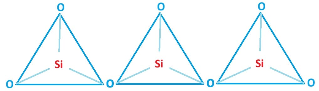 La silice pura SiO2 è stabile fino a 867°C, ma scaldandola, i legami si rompono e si riformano strutture cristalline diverse: la tridimite (SiO2) nell’intervallo 867 – 1470°C e la cristobalite (SiO2) nell’intervallo 1470°C – 1720°C. Finalmente a 1720°C avviene la fusione, in cui i tetraedri sono orientati casualmente.