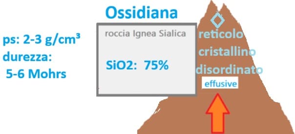 L’ossidiana è una roccia vulcaniche effusiva considerata vetro naturale.