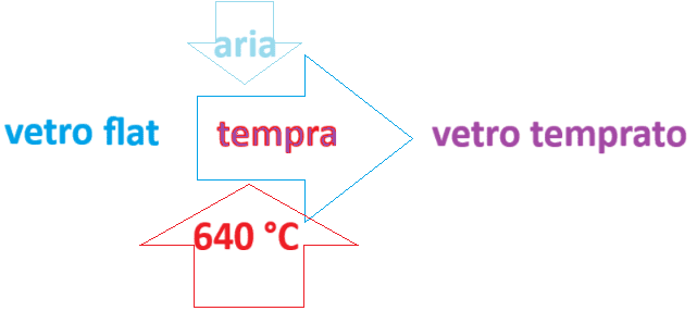Il vetro float viene nuovamente riscaldato a 650°C-750°C. Poi viene velocemente raffreddato fino a temperatura ambiente con getti di aria fredda.