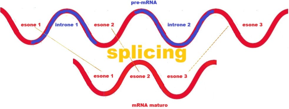 Gli introni devono essere tolti, resteranno solo gli esoni che formano l’ mRNA maturo. La pulizia degli introni si dice splicing.